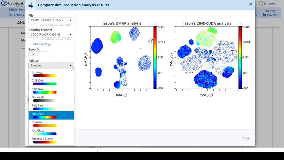 3. Kaluza / Cytobank: Have a lot of Beckman Coulter flow machines? Then Kaluza might be the best option for you. It offers seamless compatibility with their instruments and more efficient workflows for analyzing large data sets. Cytobank is the other offering from Beckman Coulter, and has a broader scope than Kaluza. Taking a platform approach, Cytobank brings together a more robust suite of capabilities beyond visualization, including ML support for analysis, experiment tracking, more regular updates and improvements, and more. As with FlowJo, the main downsides involve costs and getting set up.