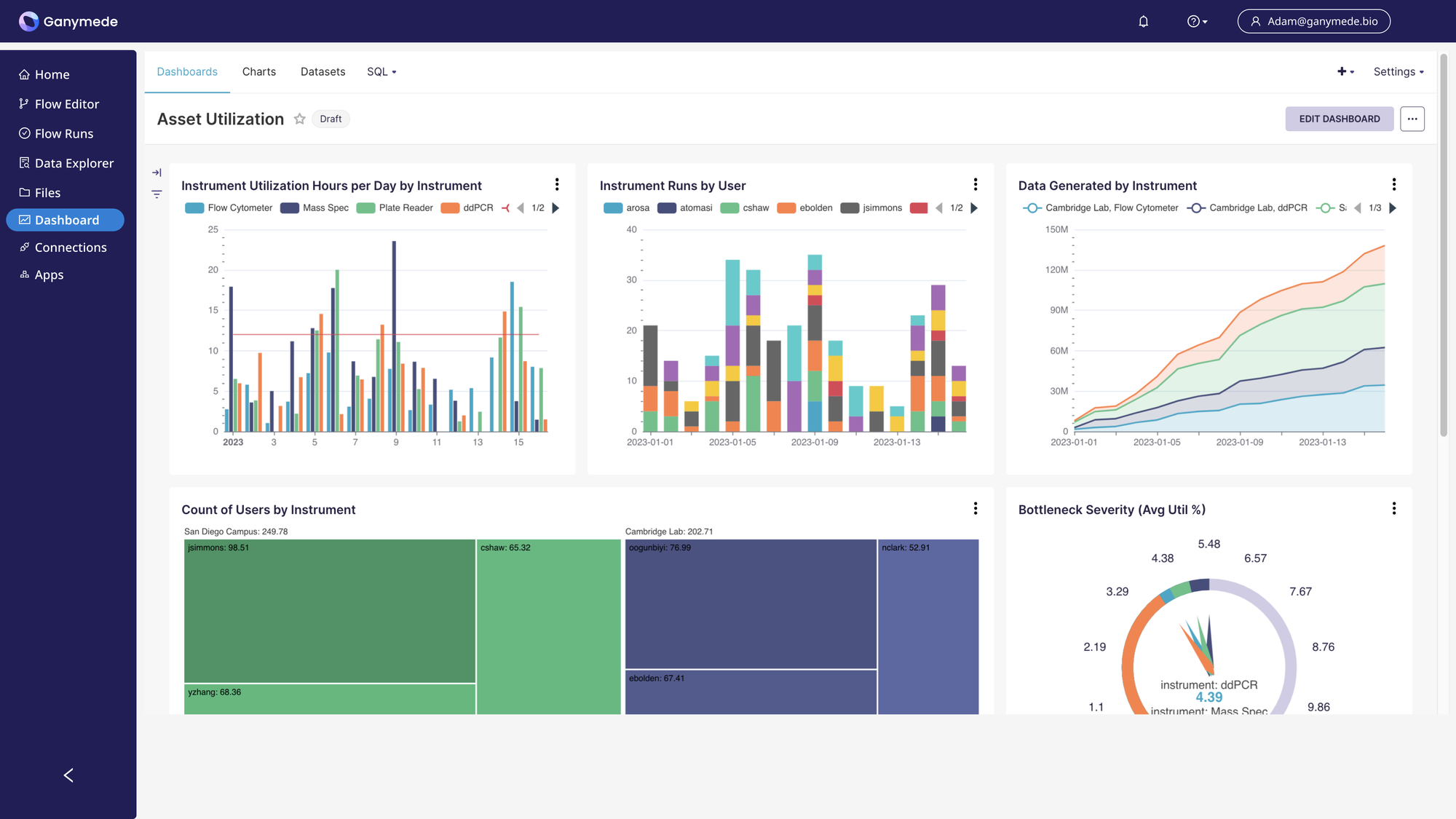 - Data scientists can start looking across many experiments, including historical ones, to determine patterns Lab management can look at the metadata of experiments to derive insights into their lab operations (e.g. cell sorter runs by our cell line development team this week, month, quarter, and year to assess capex).