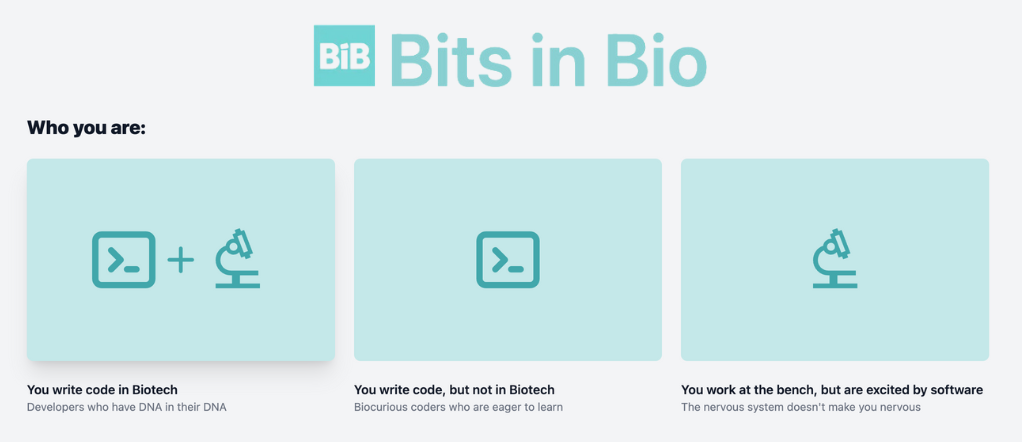 - Bits in Bio - an immersive, free, and rapidly growing community of anyone interested in the intersection of science and technology. Make sure to join their highly active Slack community.